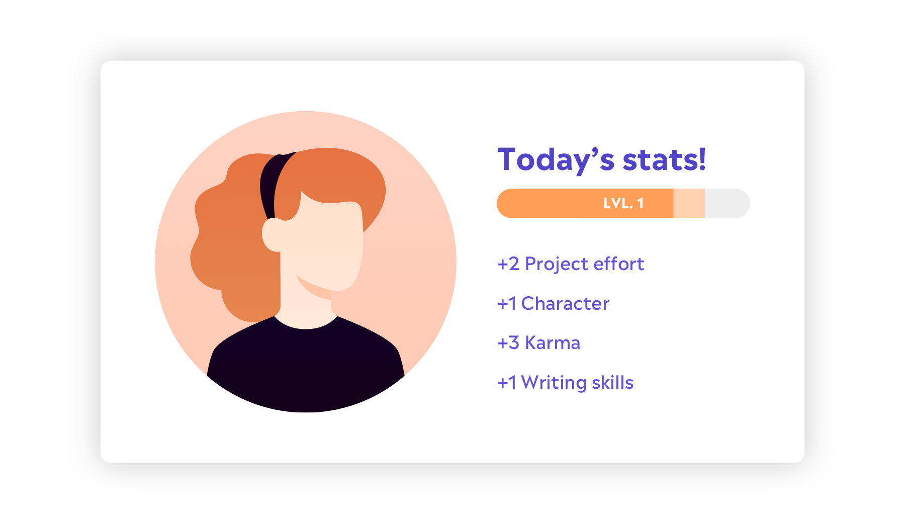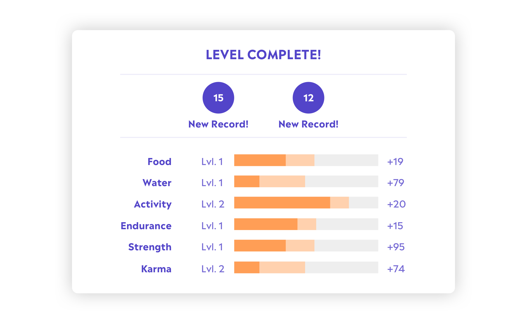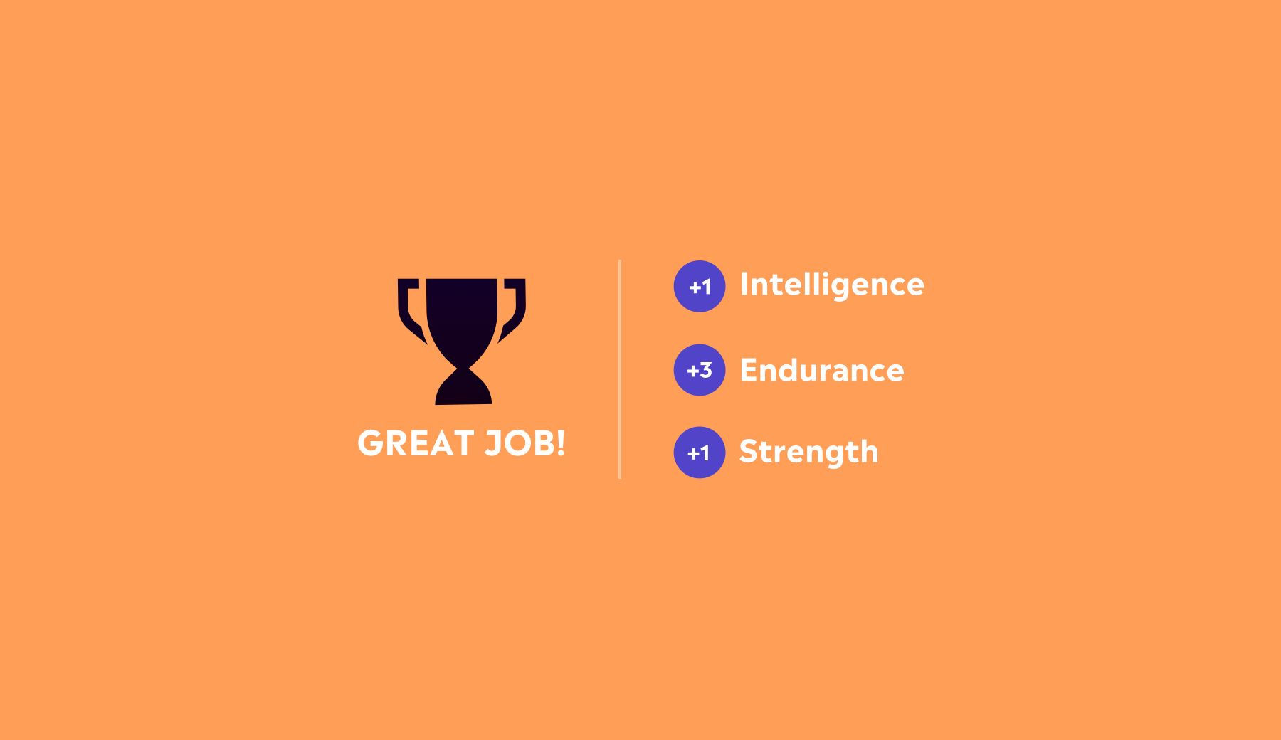 这时候我们该如何奖励用户或进行实时反馈呢?可以为每个待完成的事项设定奖励(比如心情 +1、力量 +1、健康值 + 1 这种动画效果),这些积分可以转换成经验值,最终用以累积升级。
