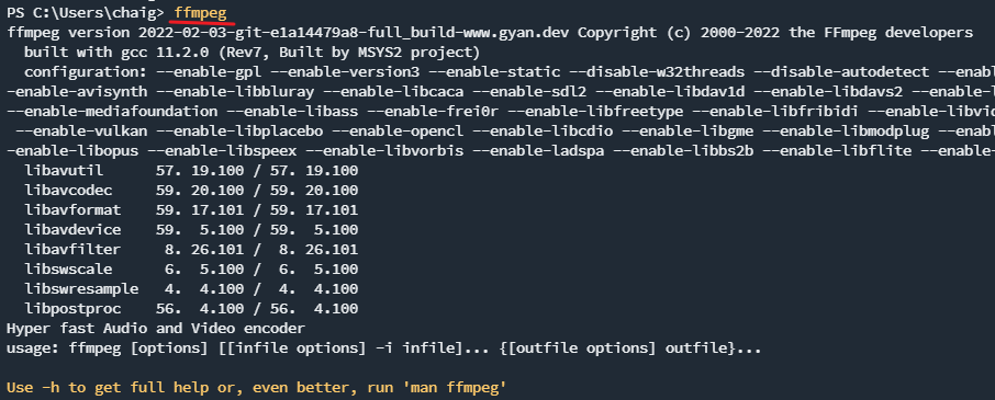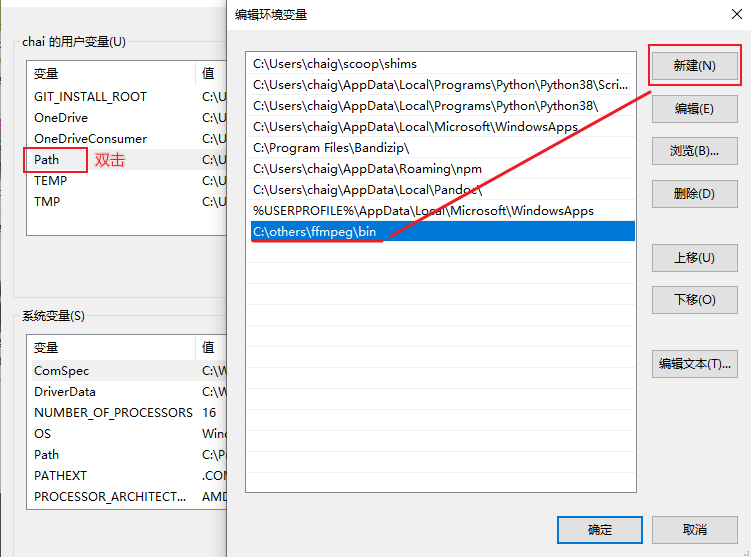 将刚才记住的存放路径粘贴到这里然后确定保存。接下来打开终端测试一下 ffmpeg 的命令看是否安装成功,如果命令识别出来则表示安装生效: