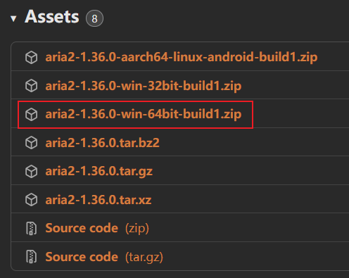 这里我选择的是 64 位的版本,下载后解压缩文件,将文件夹转移到你希望放置程序的地方(尽量选择非中文的目录路径),比如我这里将文件夹改名并放在C:\others\aria2。