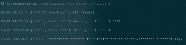 当终端显示以下信息后,则表示 Aria2 运行成功: