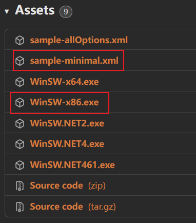 截至到以上设置,虽然可以正常使用,但是每次都需要手动打开终端运行核心文件,且还要一直保持终端运行,始终不太方便,因此可以使用 WinSW 这个工具进行以下配置,让电脑每次开机后自动在后台运行,我们要用的时候只用打开客户端即可。