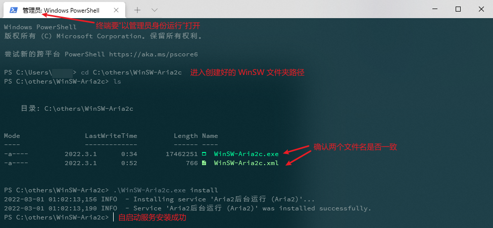 修改好后,将 .exe 和.xml的文件名改成统一名称,格式后缀不要改动,然后 以管理员身份运行 终端PowerShell.exe,执行以下指令: