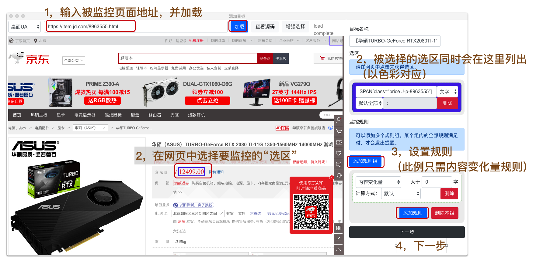 1. 设置监控选区(即网页中你要监控哪些部分)