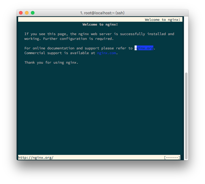 然后就可以使用 lynx/links http://localhost 命令来查看 Nginx 的欢迎页面了。