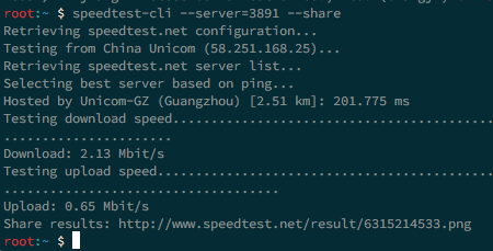 speedtest-cli --share # 分享网速,在 speedtest 网站上生成网速测试结果的图片
