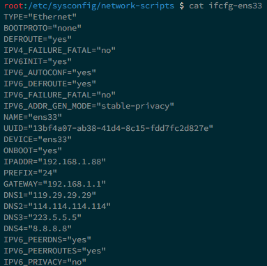 更改了 ifcfg-ens33 之后,它看起来像下面的这样: