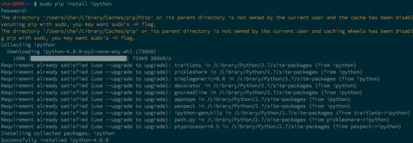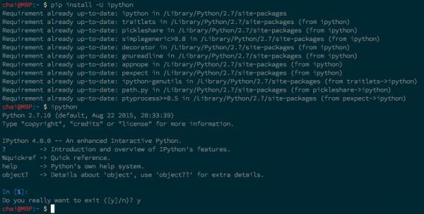 本来我以为是不会有这篇文章的,因为当初在 Mac OS X 10.9 系统上非常容易的就安装好了 IPython,谁想到如今升级到了 Mac OS X 10.11(El Capitan)反倒让很多当年顺理成章做成的事情变的不再那么方便。