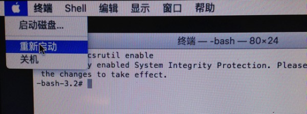 命令执行后,重启系统,这样 SIP 功能又正常运作了。